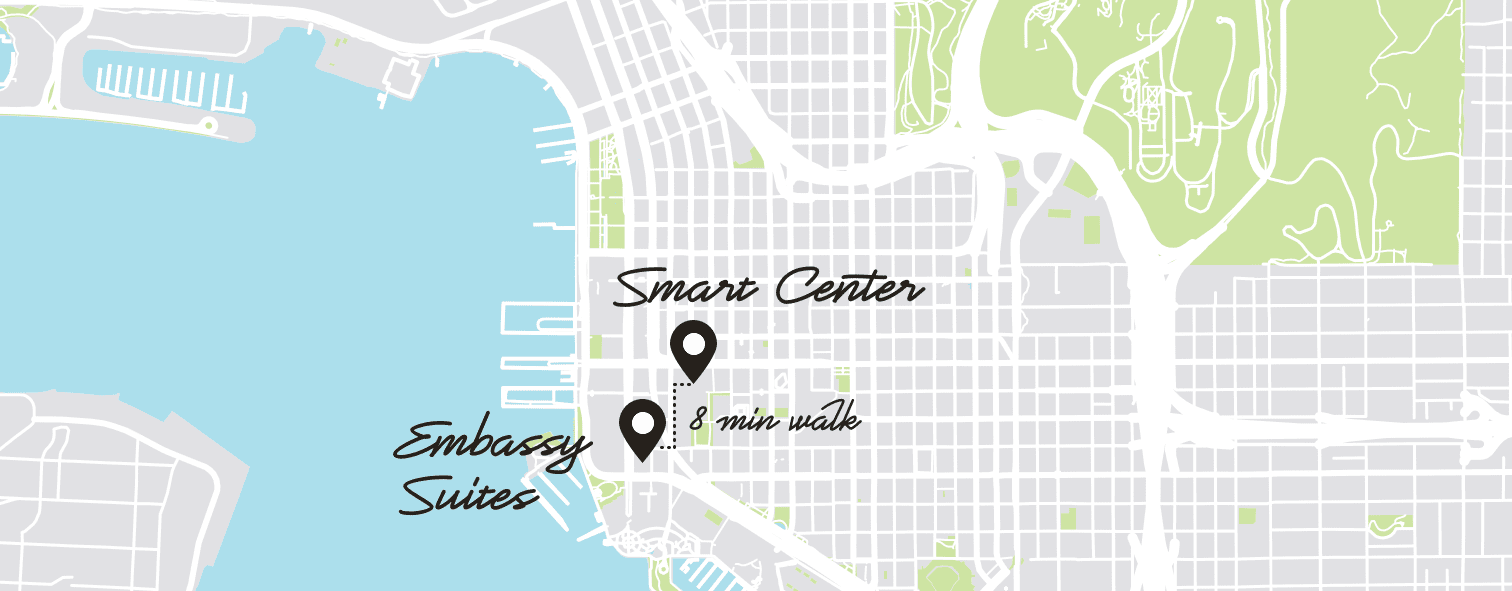 The IQ Smart Center is a modern event facility in downtown San Diego that is easily accessible from the recommended hotel and right in the heart of the city. It has fast Wifi, comfortable seating, and a great layout for presentation and interactive sessions alike.